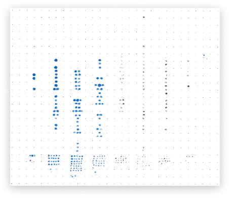 The overarching vision of the project was to showcase the cumulative success of the program, so we added a ācollection zoneā of dots at the bottom that adds them all up. š§®
