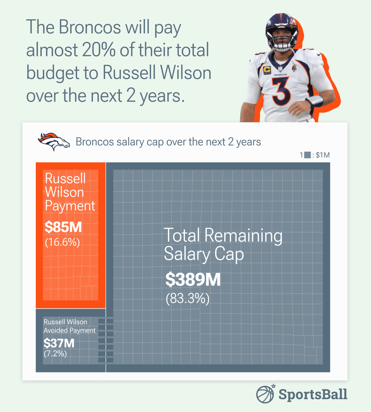 Taking what we learned from last week’s salary cap discussion, that means 16.6% of the Broncos’ total budget will be heading down the drain.